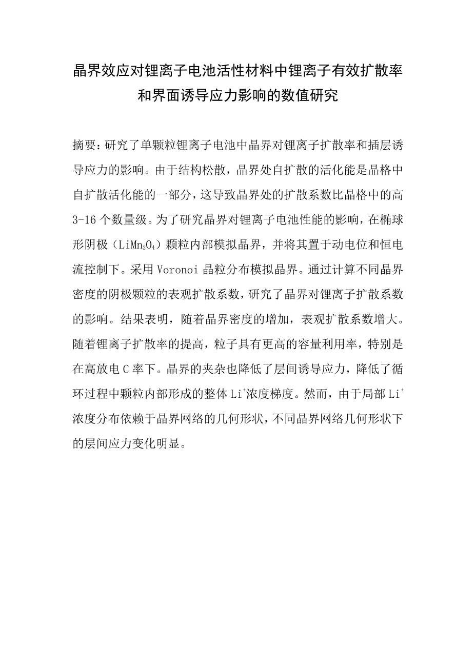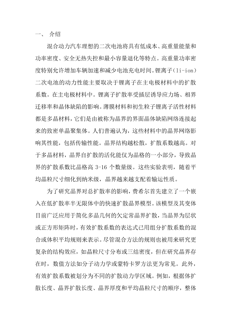 晶界效应对锂离子电池活性材料中锂离子有效扩散率 和界面诱导应力影响的数值研究外文翻译资料 2022-08-09 14:46:46 英语原文共 13 页,剩余内容已隐藏,支付完成后下载完整资料 英语译文共 15 页,剩余内容已隐藏,支付完成后下载完整资料 资料编号:[239164],资料为PDF文档或Word文档,PDF文档可免费转换为Word 原文和译文剩余内容已隐藏,您需要先支付 30元 才能查看原文和译文全部内容!立即支付 发小红书推广免费获取该资料资格。点击链接进入获取推广文案即可: Ai一键组稿 | 降AI率 | 降重复率 | 论文一键排版 PREVIOUS NEXT 您可能感兴趣的文章 张家港高校土木实验楼设计外文翻译资料 拱坝-地基系统的地震稳定性评估外文翻译资料 不同载荷配置和边界条件下梁板系统在渐进倒塌下的张拉膜作用研究外文翻译资料 节理岩体强度折减模型及单轴压缩试验的近动力模拟外文翻译资料 Herglotz型时滞Hamilton系统的 Noether对称性与守恒量外文翻译资料 时间尺度上的时滞非保守系统的Noether定理外文翻译资料 时滞非完整系统的Noether定理外文翻译资料 受到小于欧拉临界力时纵向压杆的屈曲问题外文翻译资料 分析了等强度复合型材料弯曲问题的正确性外文翻译资料 自然火灾下钢结构的试验性能外文翻译资料