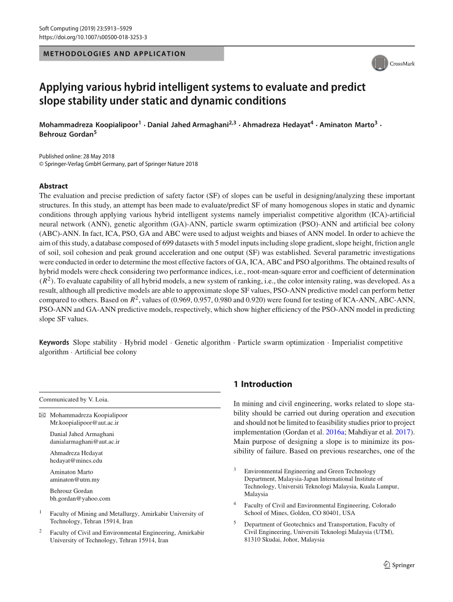 在此之前,已经开发了几种计算安全系数的技术。两种常用的SF分析方法包括数值法(NM)和极限平衡法(LEM)(Duncan 1996年)。然而,上述技术是复杂的,需要重复操作(梁和张2010)。此外,它们有时需要许多参数作为输入来解决问题(Sarma 1979;Shangguan等,2009年;Mahdiyar等,2017年)。 似乎有必要为SF仿真分析提供一种更简单的替代性方法。
