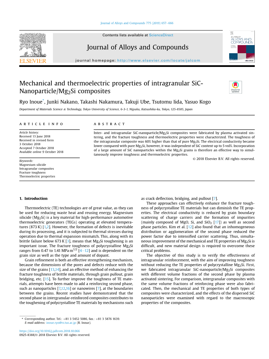 纳米SiC颗粒晶内复合Mg2Si材料力学及热电性能研究外文翻译资料