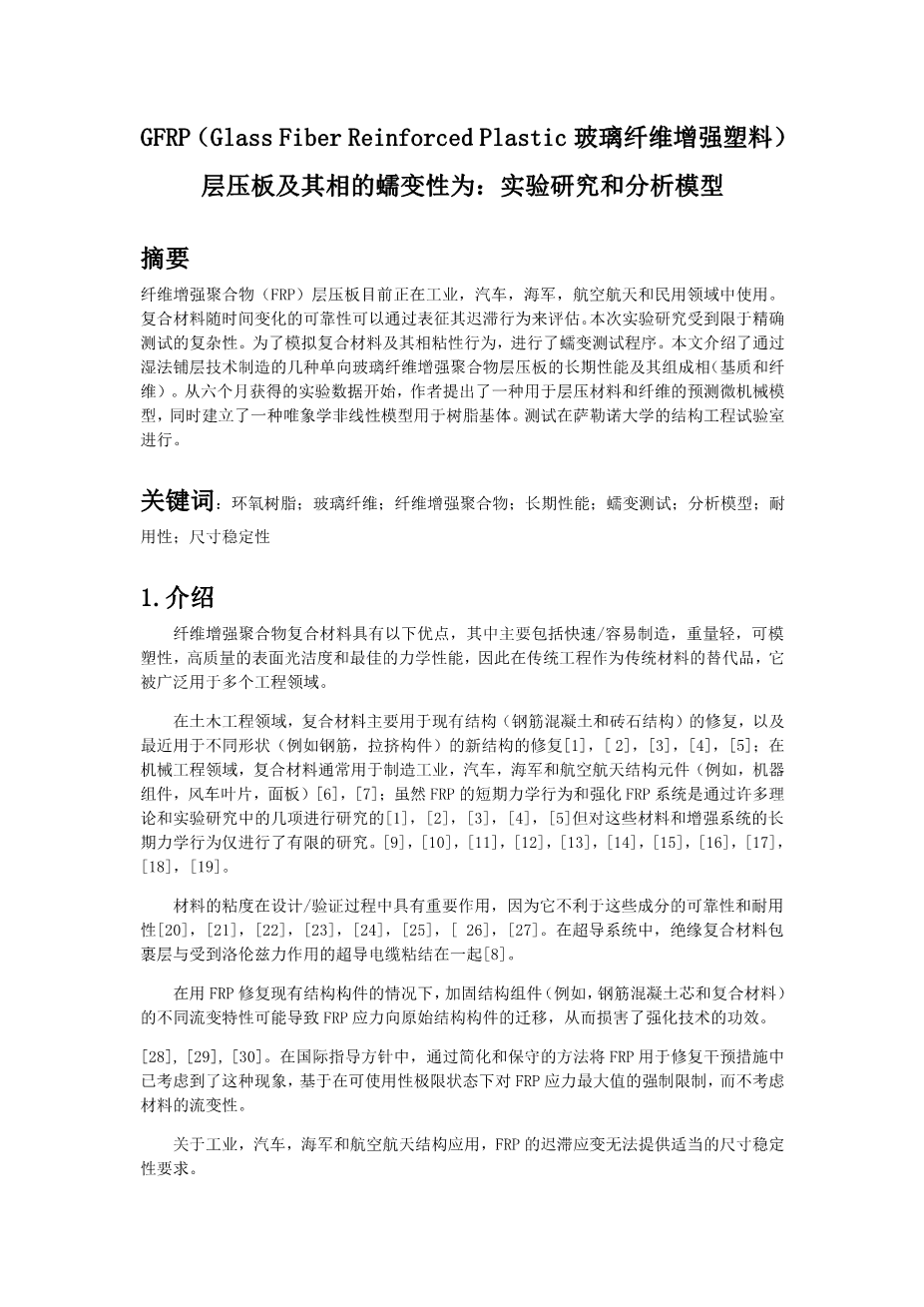 GFRP (Glass Fiber Reinforced Plastic玻璃纤维增强塑料) 层压板及其相的蠕变性为:实验研究和分析模型外文翻译资料