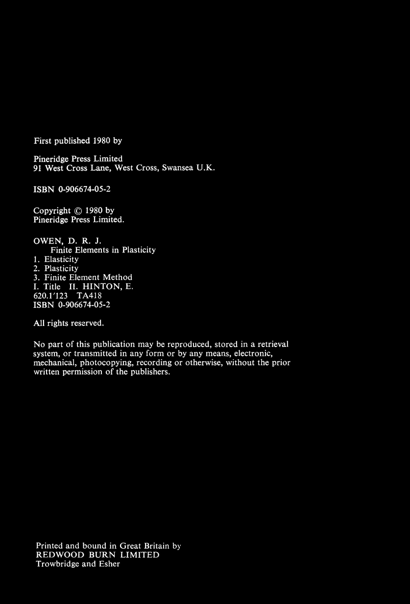 第八章处理平面应力/应变和轴对称中材料具有依赖时间的弹粘塑性行为的问题。