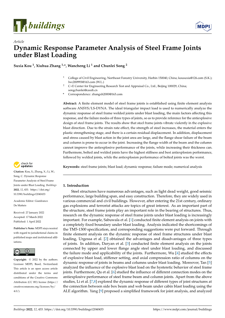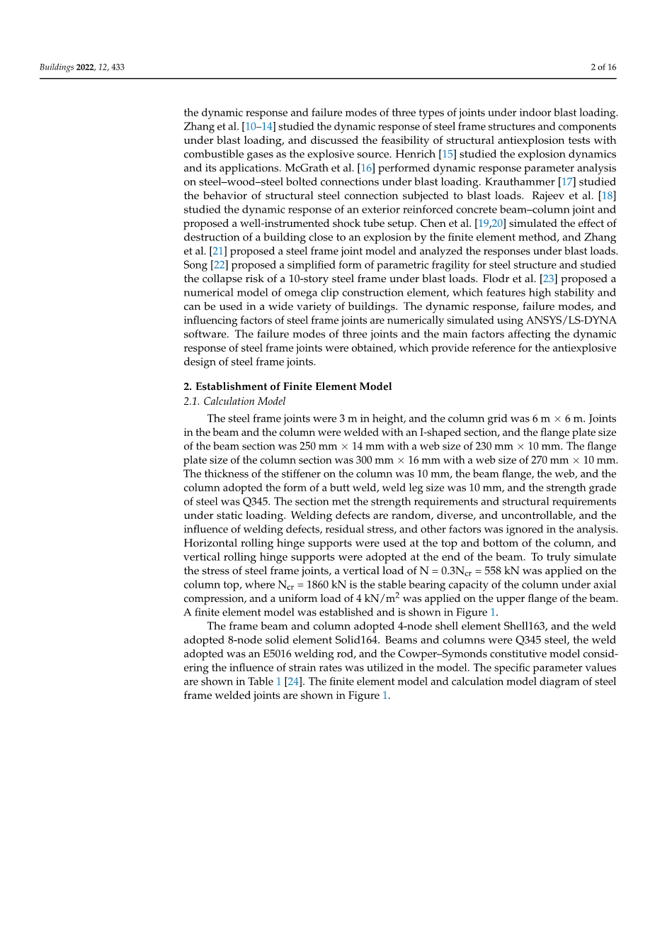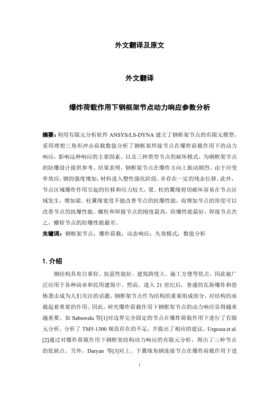 爆炸荷载作用下钢框架节点动力响应参数分析外文翻译资料
