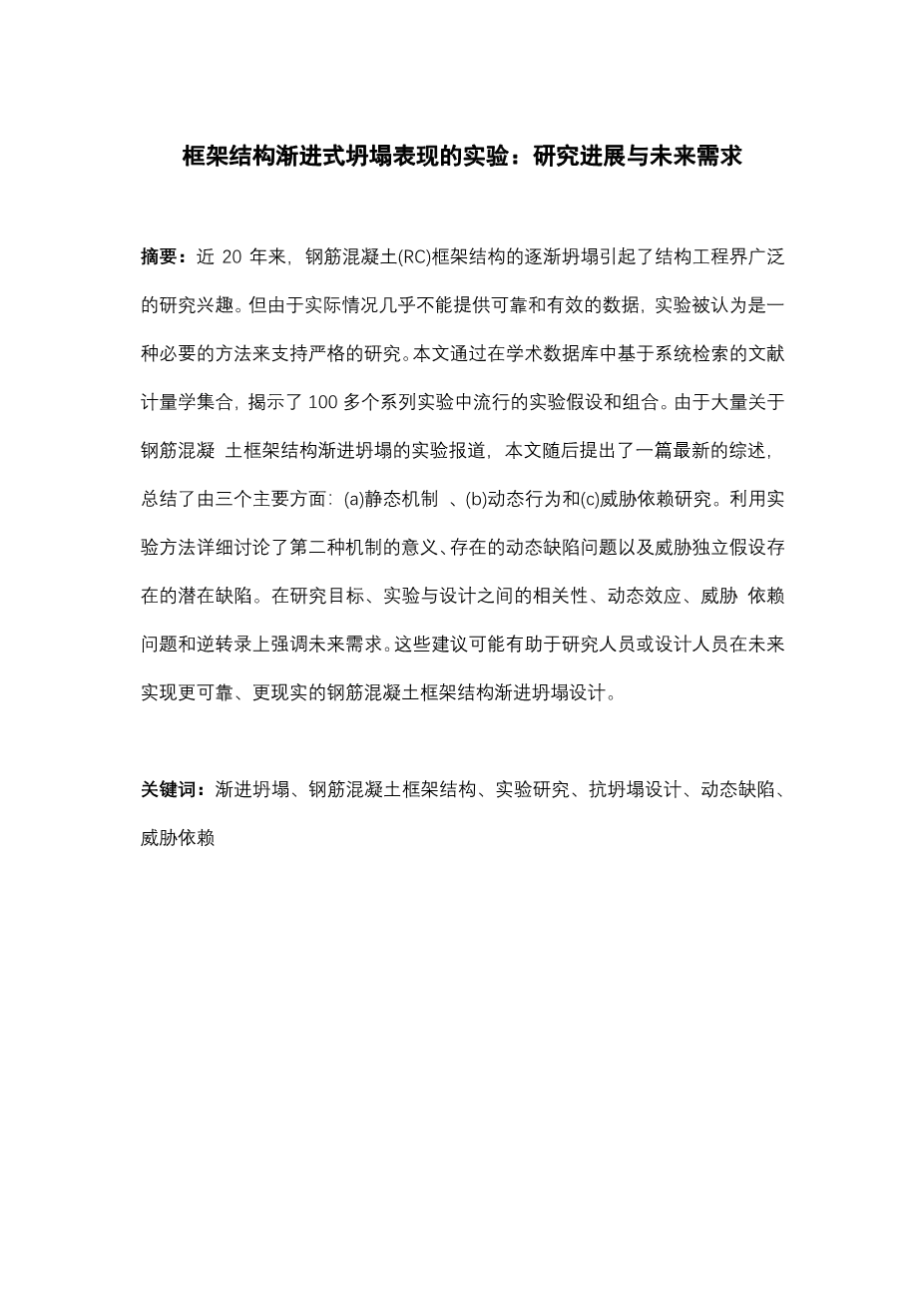框架结构渐进式坍塌表现的实验:研究进展与未来需求外文翻译资料 2023-04-08 22:46:18 英语原文共 23 页,剩余内容已隐藏,支付完成后下载完整资料 英语译文共 77 页,剩余内容已隐藏,支付完成后下载完整资料 资料编号:[590325],资料为PDF文档或Word文档,PDF文档可免费转换为Word 原文和译文剩余内容已隐藏,您需要先支付 30元 才能查看原文和译文全部内容!立即支付 发小红书推广免费获取该资料资格。点击链接进入获取推广文案即可: Ai一键组稿 | 降AI率 | 降重复率 | 论文一键排版 PREVIOUS NEXT 您可能感兴趣的文章 张家港高校土木实验楼设计外文翻译资料 拱坝-地基系统的地震稳定性评估外文翻译资料 不同载荷配置和边界条件下梁板系统在渐进倒塌下的张拉膜作用研究外文翻译资料 节理岩体强度折减模型及单轴压缩试验的近动力模拟外文翻译资料 Herglotz型时滞Hamilton系统的 Noether对称性与守恒量外文翻译资料 时间尺度上的时滞非保守系统的Noether定理外文翻译资料 时滞非完整系统的Noether定理外文翻译资料 受到小于欧拉临界力时纵向压杆的屈曲问题外文翻译资料 分析了等强度复合型材料弯曲问题的正确性外文翻译资料 自然火灾下钢结构的试验性能外文翻译资料