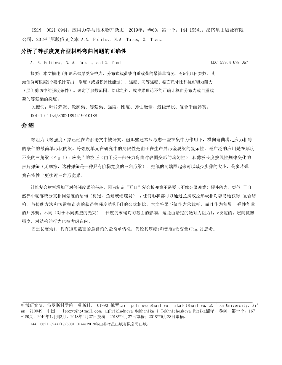 分析了等强度复合型材料弯曲问题的正确性外文翻译资料