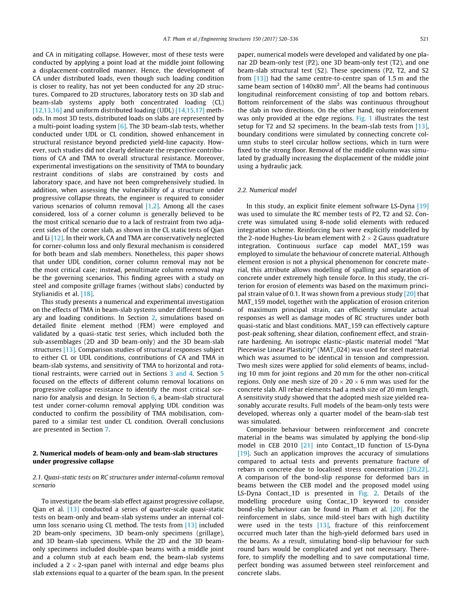 2 渐进倒塌条件下的纯梁和梁板结构数值模型