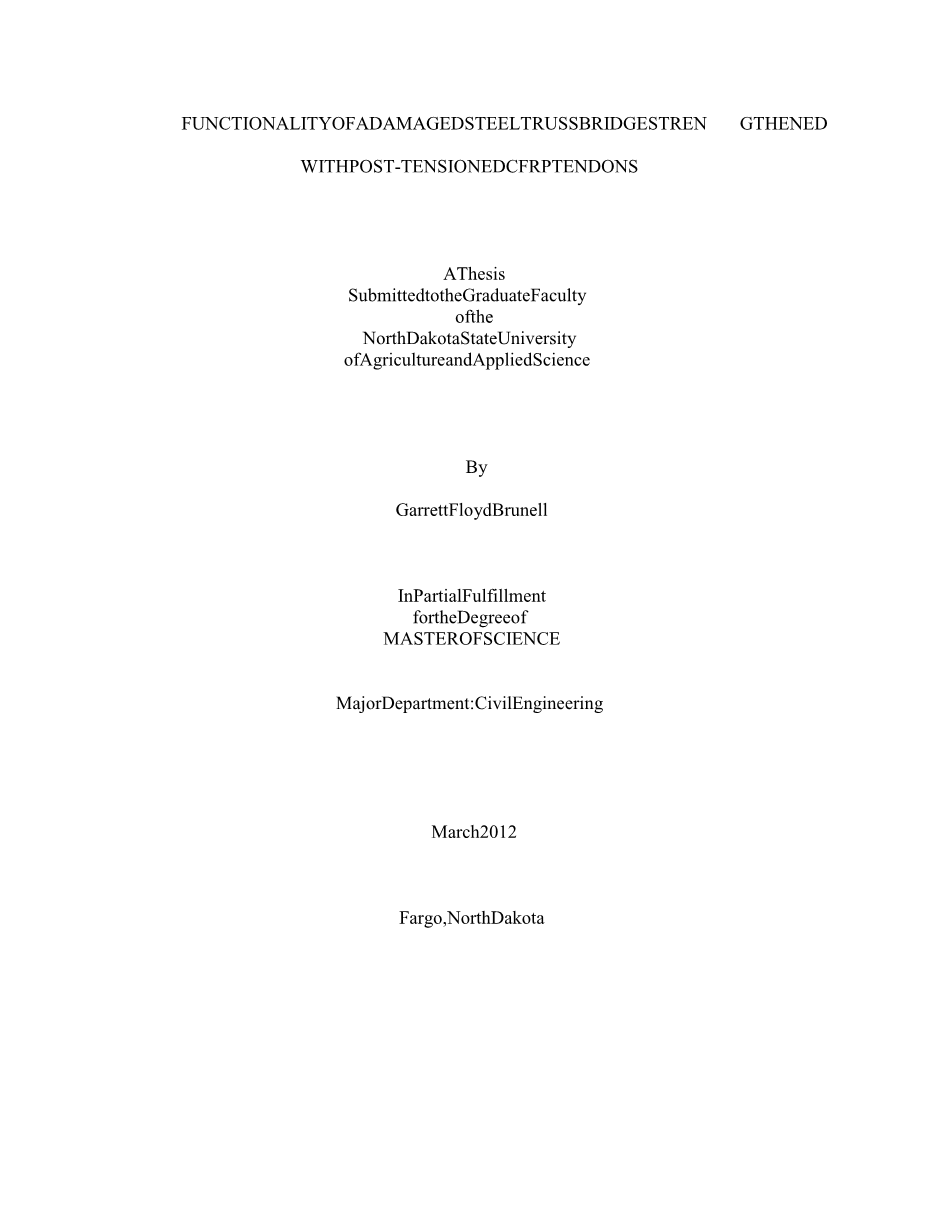我想感谢几个在设计实验,进行实验,确定合适的数值模拟程序并撰写了该作品的手稿过程中帮助过我的人。一个研究生,Amer Hmidan,对实验测试程序和测试监控的使用提供了深入的见解。他经常在实验室里,这对测试结果的质量有显著的影响。还有,北达科他州机械工程系的Majura Selekwa博士非常慷慨的提供电子监控设备在研究的实验测试过程中帮助了收集数据。我的导师吉米·金博士在指导这项工作的过程中发挥了重要作用。他在研究加固桥梁的理论方法方面的经验以及用于评价已建成桥梁的性能的方法有助于确定评价钢桁架桥梁损伤效果的最适当方法和加固桥梁的结果。