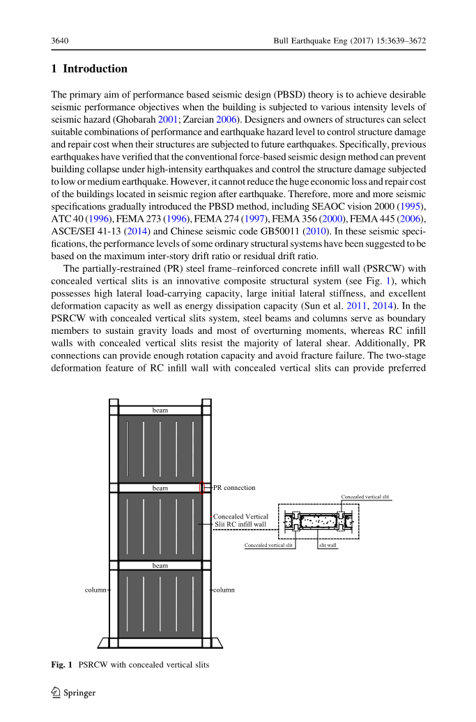 部分约束钢框架-竖向暗缝钢筋混凝土填充墙结构的性能水平限值及损伤评估外文翻译资料