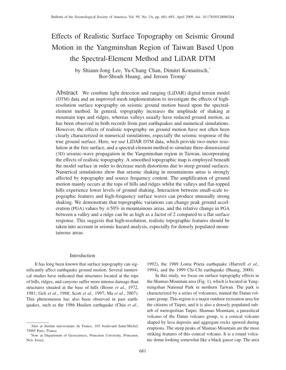 由Shiann-Jong Lee, yuchang Chan, dmitri Komatitsch,* borshouh Huang,和耶罗恩Tromp提供