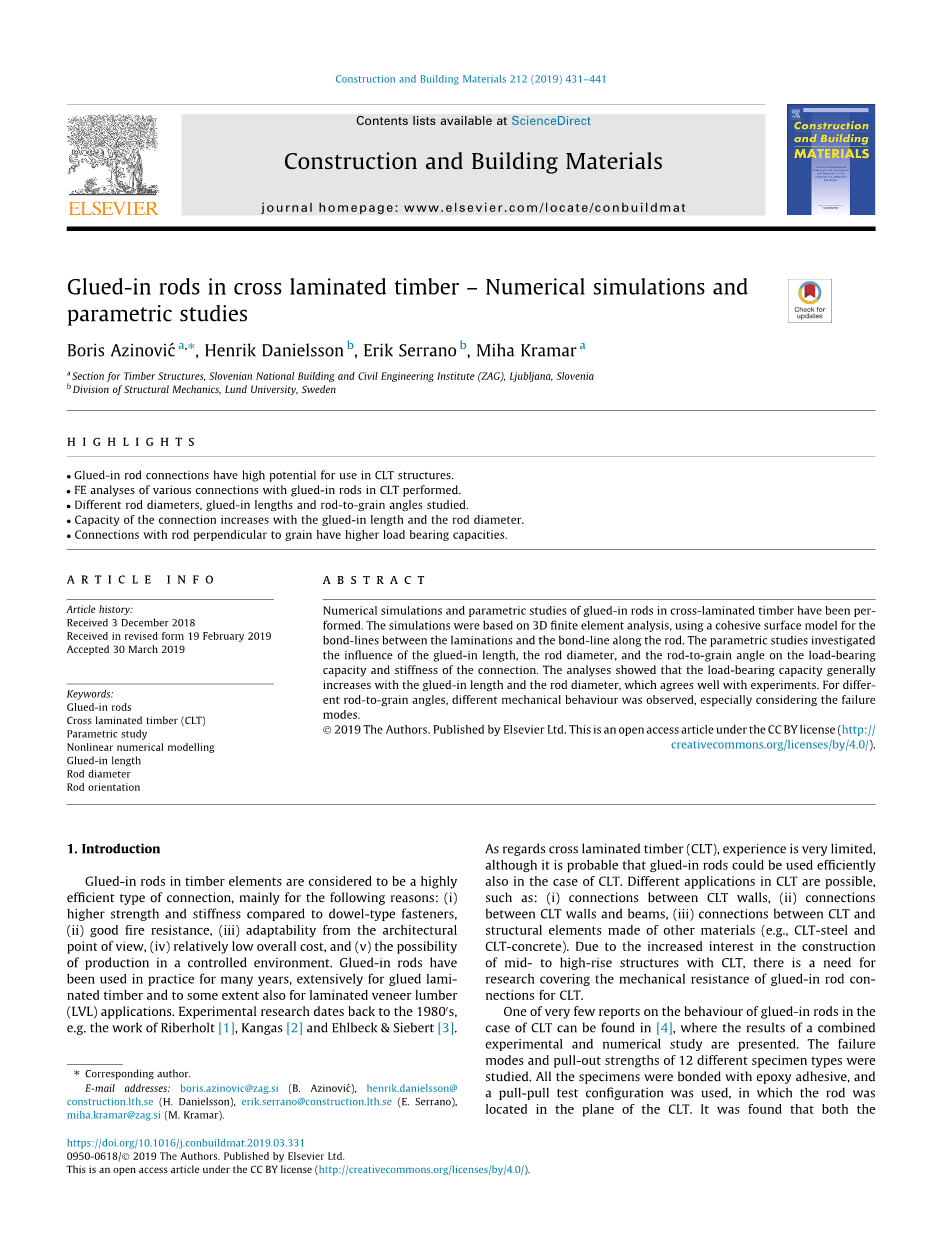 电子邮件地址:boris.azinovic@zag。si (b . Azinović),亨瑞克。danielsson@ construction.lth。se (H. Danielsson), erik.serrano@construction.lth。se (E. Serrano), miha.kramar@zag.si (M. Kramar)。