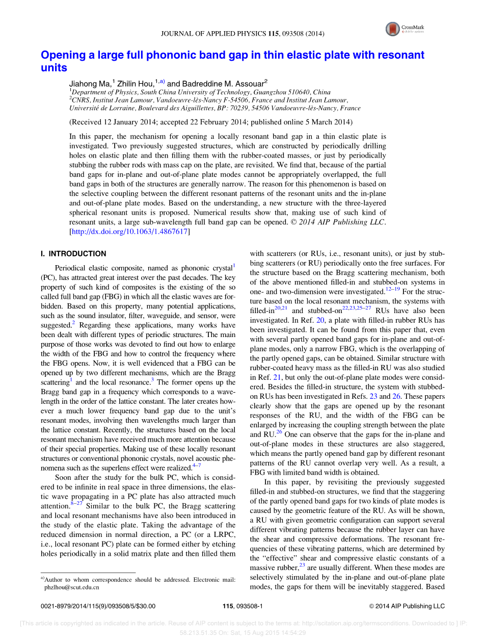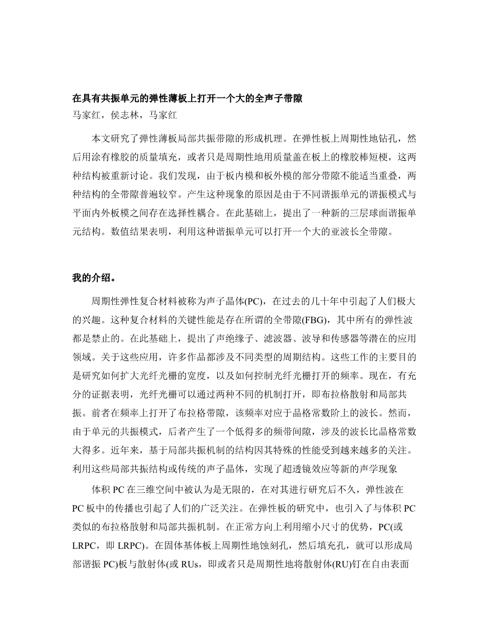 局域共振型声子晶体梁结构带隙特性研究外文翻译资料 2022-02-25 22:45:44 英语原文共 6 页,剩余内容已隐藏,支付完成后下载完整资料 英语译文共 6 页,剩余内容已隐藏,支付完成后下载完整资料资料编号:[437745],资料为PDF文档或Word文档,PDF文档可免费转换为Word 原文和译文剩余内容已隐藏,您需要先支付 30元 才能查看原文和译文全部内容!立即支付 发小红书推广免费获取该资料资格。点击链接进入获取推广文案即可: Ai一键组稿 | 降AI率 | 降重复率 | 论文一键排版 PREVIOUS NEXT 您可能感兴趣的文章 张家港高校土木实验楼设计外文翻译资料 拱坝-地基系统的地震稳定性评估外文翻译资料 不同载荷配置和边界条件下梁板系统在渐进倒塌下的张拉膜作用研究外文翻译资料 节理岩体强度折减模型及单轴压缩试验的近动力模拟外文翻译资料 Herglotz型时滞Hamilton系统的 Noether对称性与守恒量外文翻译资料 时间尺度上的时滞非保守系统的Noether定理外文翻译资料 时滞非完整系统的Noether定理外文翻译资料 受到小于欧拉临界力时纵向压杆的屈曲问题外文翻译资料 分析了等强度复合型材料弯曲问题的正确性外文翻译资料 自然火灾下钢结构的试验性能外文翻译资料