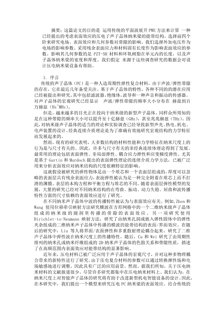 考虑表面效应的纳米声子晶体梁结构带隙特性研究外文翻译资料 2022-02-25 22:45:47 英语原文共 10 页,剩余内容已隐藏,支付完成后下载完整资料 英语译文共 7 页,剩余内容已隐藏,支付完成后下载完整资料资料编号:[437736],资料为PDF文档或Word文档,PDF文档可免费转换为Word 原文和译文剩余内容已隐藏,您需要先支付 30元 才能查看原文和译文全部内容!立即支付 发小红书推广免费获取该资料资格。点击链接进入获取推广文案即可: Ai一键组稿 | 降AI率 | 降重复率 | 论文一键排版 PREVIOUS NEXT 您可能感兴趣的文章 张家港高校土木实验楼设计外文翻译资料 拱坝-地基系统的地震稳定性评估外文翻译资料 不同载荷配置和边界条件下梁板系统在渐进倒塌下的张拉膜作用研究外文翻译资料 节理岩体强度折减模型及单轴压缩试验的近动力模拟外文翻译资料 Herglotz型时滞Hamilton系统的 Noether对称性与守恒量外文翻译资料 时间尺度上的时滞非保守系统的Noether定理外文翻译资料 时滞非完整系统的Noether定理外文翻译资料 受到小于欧拉临界力时纵向压杆的屈曲问题外文翻译资料 分析了等强度复合型材料弯曲问题的正确性外文翻译资料 自然火灾下钢结构的试验性能外文翻译资料
