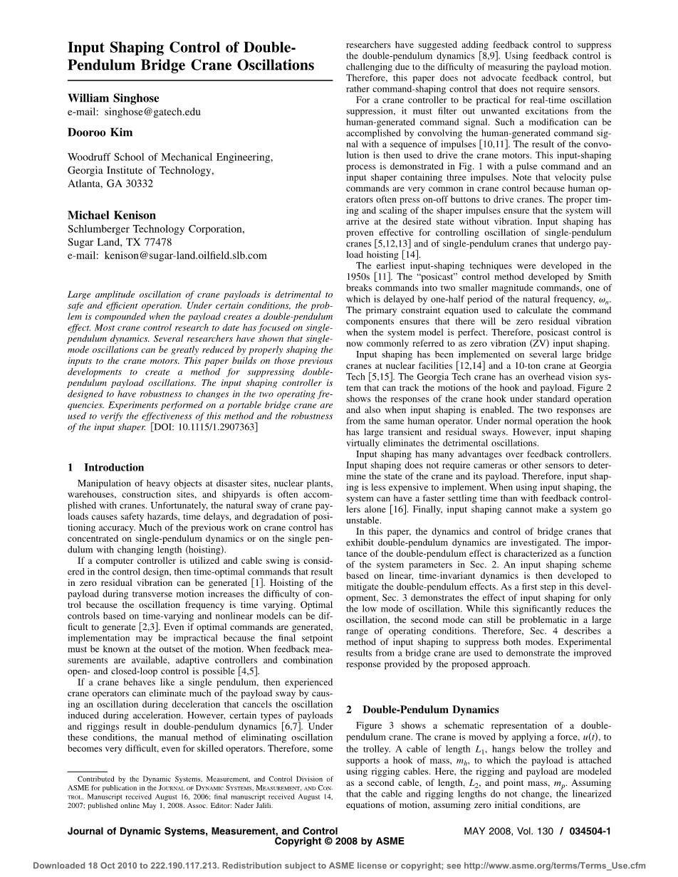 William Singhose Dooroo Kim Michael Kenison Sugar Land