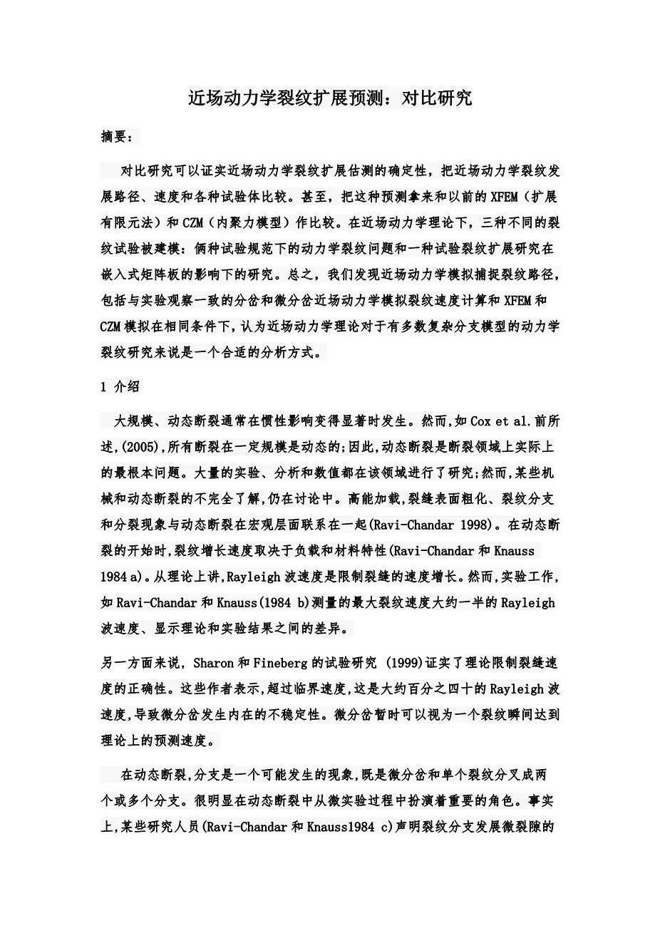 基于近场动力学方法的裂纹扩展问题研究外文翻译资料 2022-03-22 20:58:35 英语原文共 14 页,剩余内容已隐藏,支付完成后下载完整资料 英语译文共 13 页,剩余内容已隐藏,支付完成后下载完整资料资料编号:[487421],资料为PDF文档或Word文档,PDF文档可免费转换为Word 原文和译文剩余内容已隐藏,您需要先支付 30元 才能查看原文和译文全部内容!立即支付 发小红书推广免费获取该资料资格。点击链接进入获取推广文案即可: Ai一键组稿 | 降AI率 | 降重复率 | 论文一键排版 PREVIOUS NEXT 您可能感兴趣的文章 张家港高校土木实验楼设计外文翻译资料 拱坝-地基系统的地震稳定性评估外文翻译资料 不同载荷配置和边界条件下梁板系统在渐进倒塌下的张拉膜作用研究外文翻译资料 节理岩体强度折减模型及单轴压缩试验的近动力模拟外文翻译资料 Herglotz型时滞Hamilton系统的 Noether对称性与守恒量外文翻译资料 时间尺度上的时滞非保守系统的Noether定理外文翻译资料 时滞非完整系统的Noether定理外文翻译资料 受到小于欧拉临界力时纵向压杆的屈曲问题外文翻译资料 分析了等强度复合型材料弯曲问题的正确性外文翻译资料 自然火灾下钢结构的试验性能外文翻译资料
