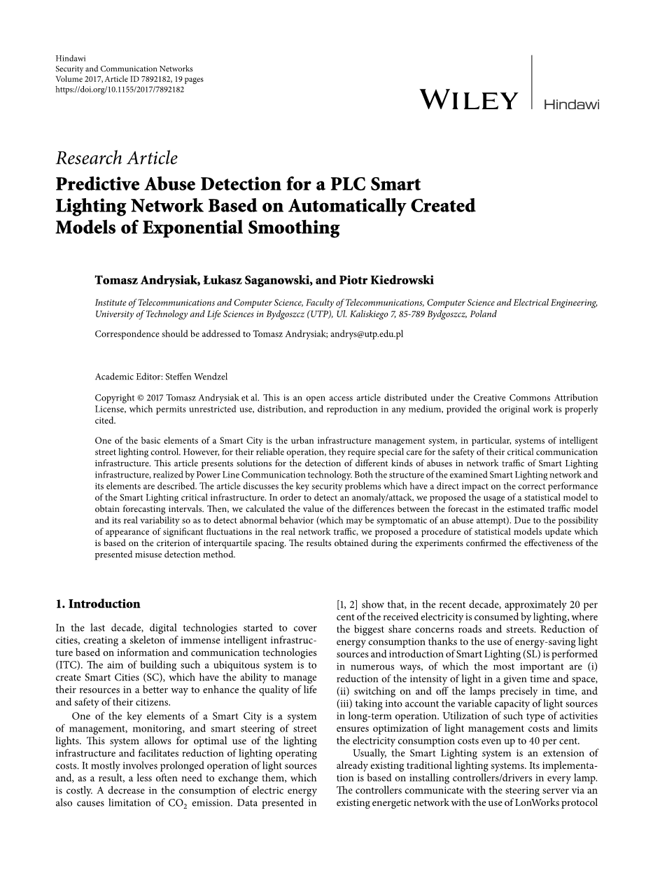 基于指数平滑模型的PLC智能照明网络预测滥用检测