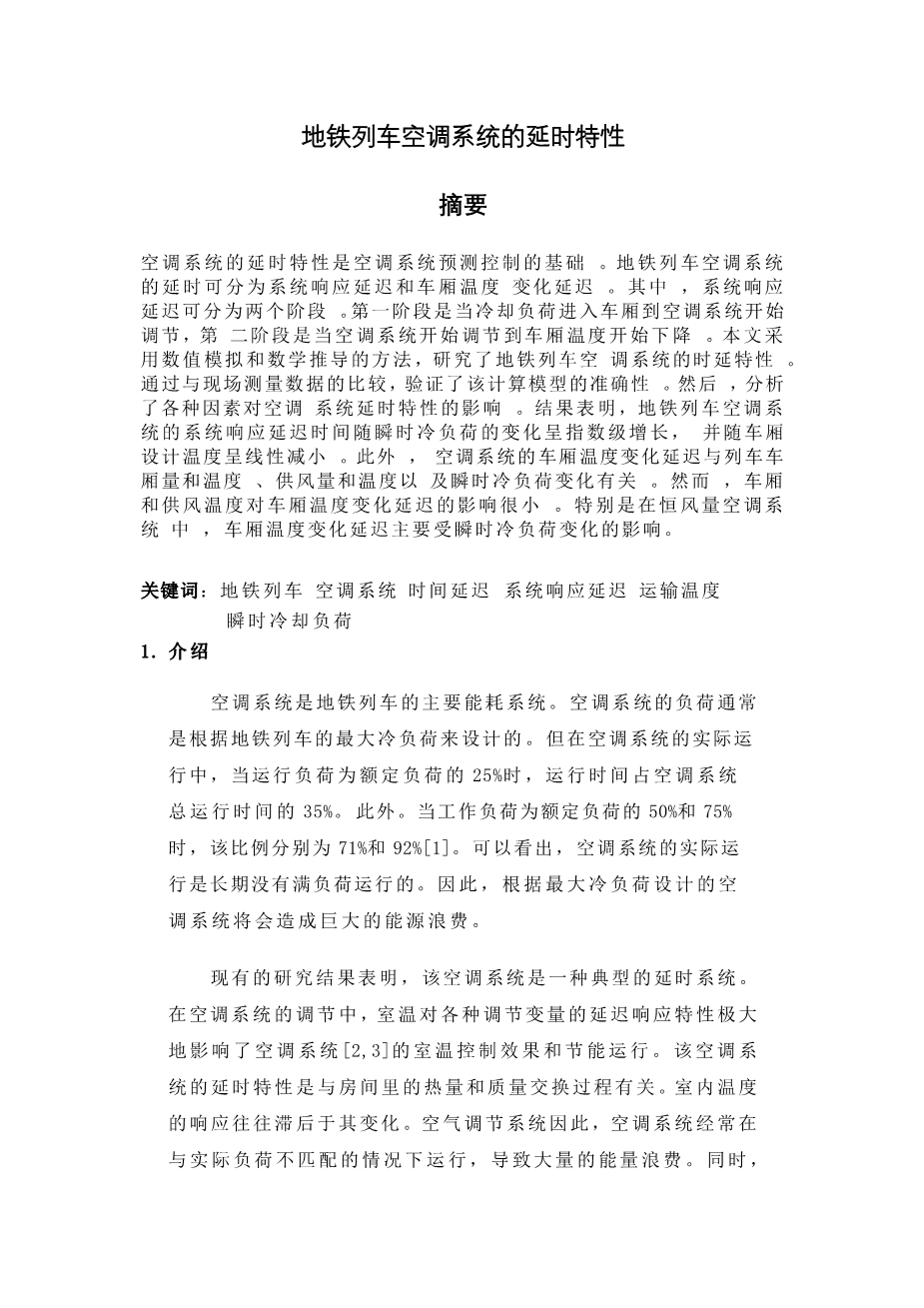 地铁列车空调系统的延时特性外文翻译资料 2023-04-03 17:08:34 英语原文共 11 页,剩余内容已隐藏,支付完成后下载完整资料 英语译文共 20 页,剩余内容已隐藏,支付完成后下载完整资料 资料编号:[590965],资料为PDF文档或Word文档,PDF文档可免费转换为Word 原文和译文剩余内容已隐藏,您需要先支付 30元 才能查看原文和译文全部内容!立即支付 发小红书推广免费获取该资料资格。点击链接进入获取推广文案即可: Ai一键组稿 | 降AI率 | 降重复率 | 论文一键排版 PREVIOUS NEXT 您可能感兴趣的文章 变分推理的研究进展外文翻译资料 强化学习技术综述:在工业过程控制中的介绍与应用外文翻译资料 通过中冷器互联的组合空调和制冷系统的性能特性外文翻译资料 配备空调系统的多人办公室人员的热适应行为和热舒适度外文翻译资料 一种主动响应智能电网电力需求的新型空调系统外文翻译资料 地铁列车空调系统的延时特性外文翻译资料 GSHP集成空调系统的空间温度控制外文翻译资料 露点间接蒸发冷却器和PV/T组合式除湿空调系统的性能评估外文翻译资料 4. 7 保护变电站绝缘外文翻译资料 智能建筑研究综述外文翻译资料