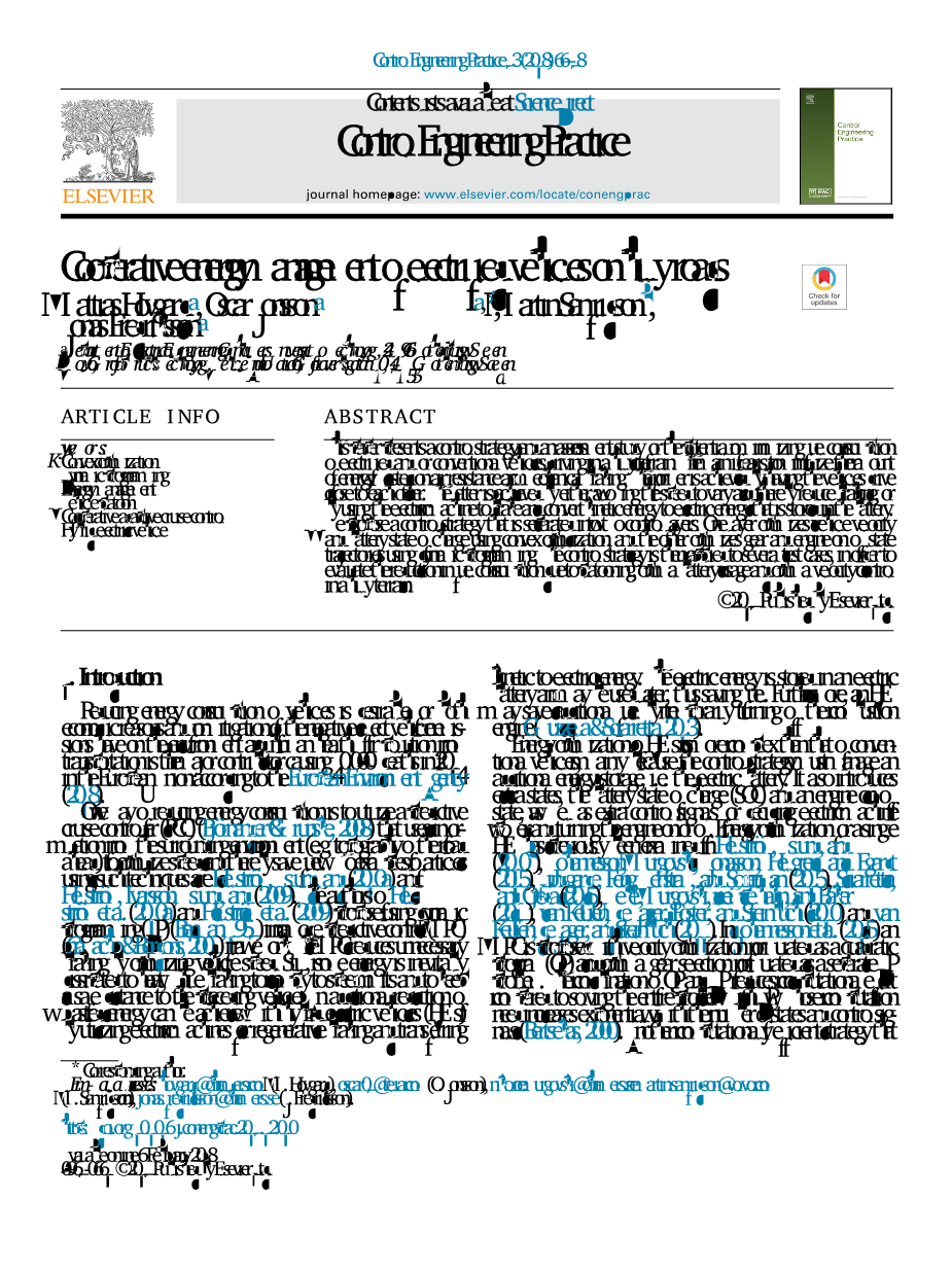 摘要:本文介绍了一种策略和一种评估研究,旨在最大限度地降低在丘陵地带行驶的电动和/或传统车辆燃料消耗。本文的主要思想是将空气阻力和机械制动导致的能量浪费最小化。前者是通过使车辆彼此靠近行驶而实现的。后者是通过速度变化而减少制动,或使用电机来制动并将动能转化为电能存储在电池中。我们提出一个控制策略,它被分成两个控制层。一层是用凸优化的方法来优化汽车速度和电池电荷状态,另一层是通过动态编程的方法优化档位和发动机开关状态轨迹。然后我们将这个控制策略应用在多个案例中,以评估在丘陵地形行驶的车辆队列中,最优电池使用和最优速度控制而导致的燃料使用减少的情况。