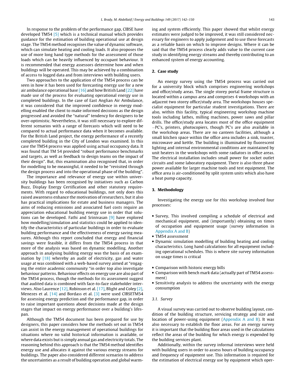 大学建筑内能源使用的重要性和相关性已被证实,显示能源认证和其他法定要求等举措所认可。在教育建筑方面,这不仅提高了意识,增强了研究人员的积极性,而且对房地产和企业管理者也具有实际意义。减少排放和相关燃料成本的目标需要对教育建筑能源的使用进行评估,以便开发解决方案。Fathi和Srinivasan已经探索了如何应用建模/模拟和统计来识别特定建筑物的特征,以评估建筑性能和节能措施的有效性。虽然本报告的结论是能源和财务节约都是可行的,但它与TM54流程的不同之处在于更多的分析基于动态建模。分析建筑能源的另一种方法是的检查基础,其中对电力,燃气和水的使用进行审核,结合基于网络的调查,旨在“吸引整个学术界”,以便调查行为方式。行为对能源使用的影响也是TM54过程的一部分,尽管其评估方法表明经审计的数据与面对面的利益相关者之间的观点相结合。Laurence,Robinson等人,Blight和Coley,Menezes等人和Bordass等人使用CIBSETM54来评估能量预测和性能差距,以便提出关于在设计阶段做出的决定的重要问题,这些决策会对建筑物的生命 周期中的能源性能产生影响。