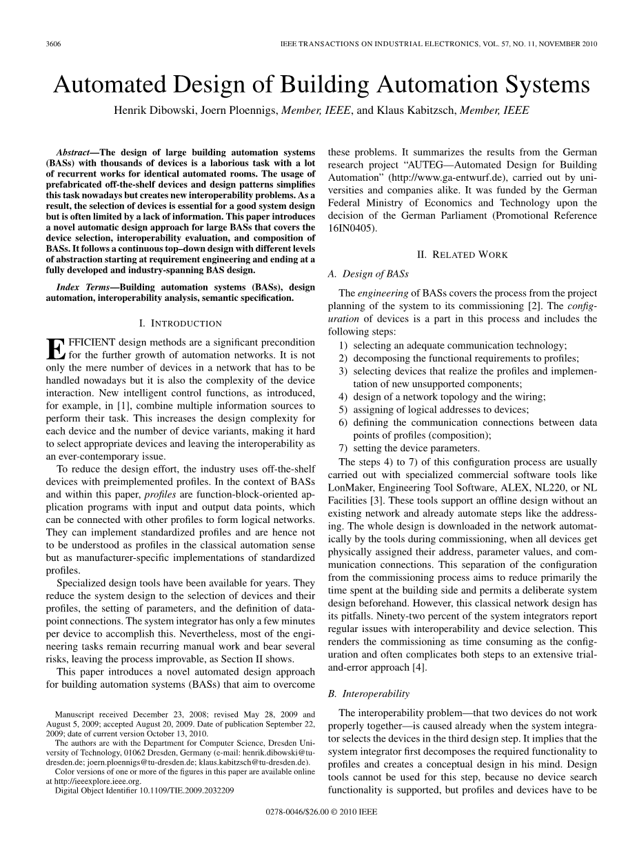 Henrik Dibowski,JoernPloennigs,IEEE会员,Klaus Kabitzsch,IEEE会员