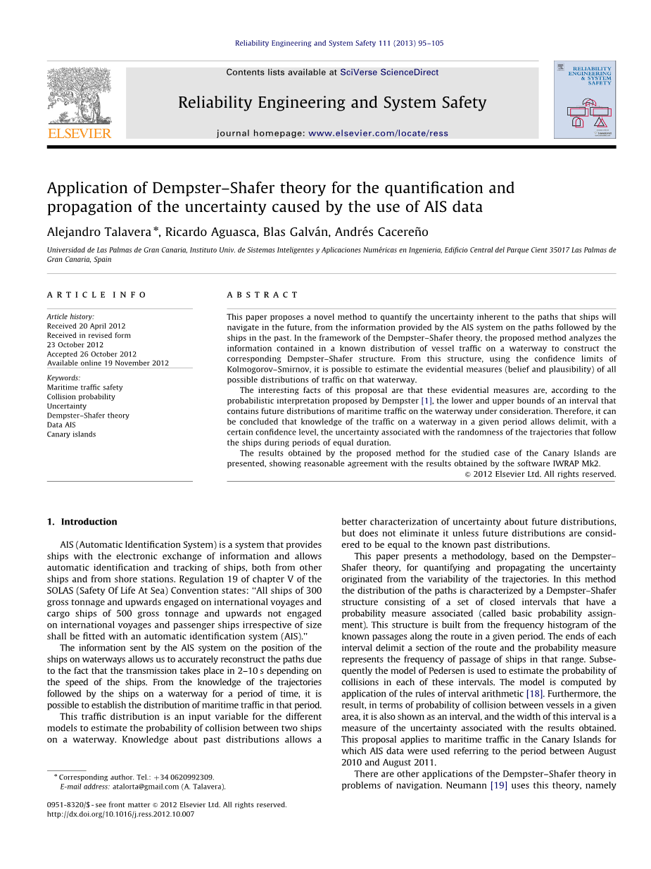 海上交通安全;碰撞概率;不确定性; Dempster-Shafer理论;数据AIS;加那利群岛