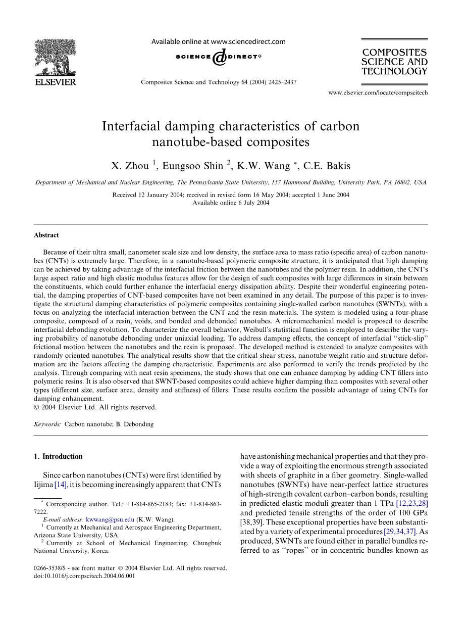 X.Zhou1,Eungsoo Shin2,K.W.Wang*,C.E.Bakis