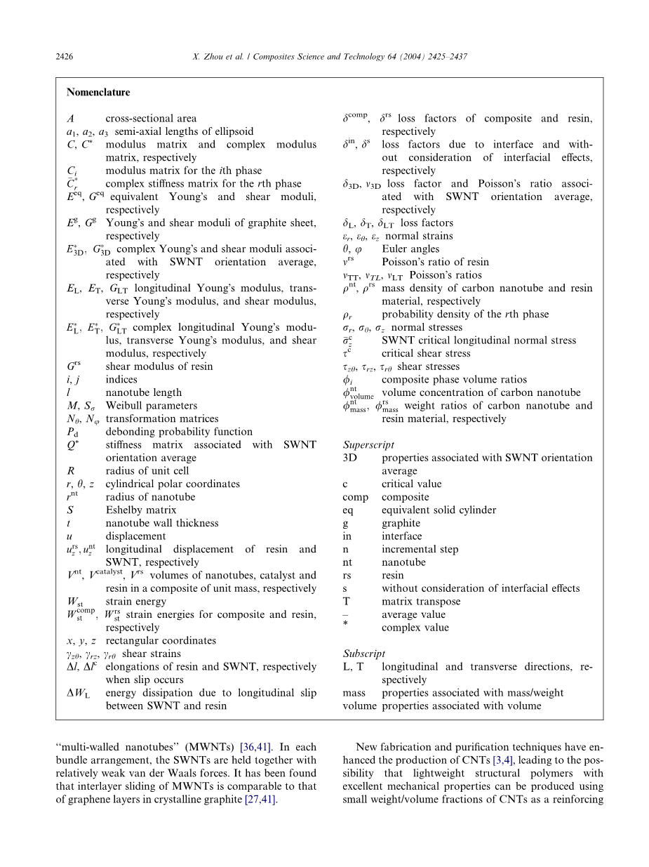 大多数关于碳纳米管基复合材料的研究集中在它们的弹性性质上。它们的阻尼机制和能力相对较少受到关注。虽然Koratkar等。[21,22] 最近观察到密集堆积的MWNT薄膜(无基质)的有希望的阻尼能力; 然而,CNT填充复合材料的阻尼特性尚未详细研究。