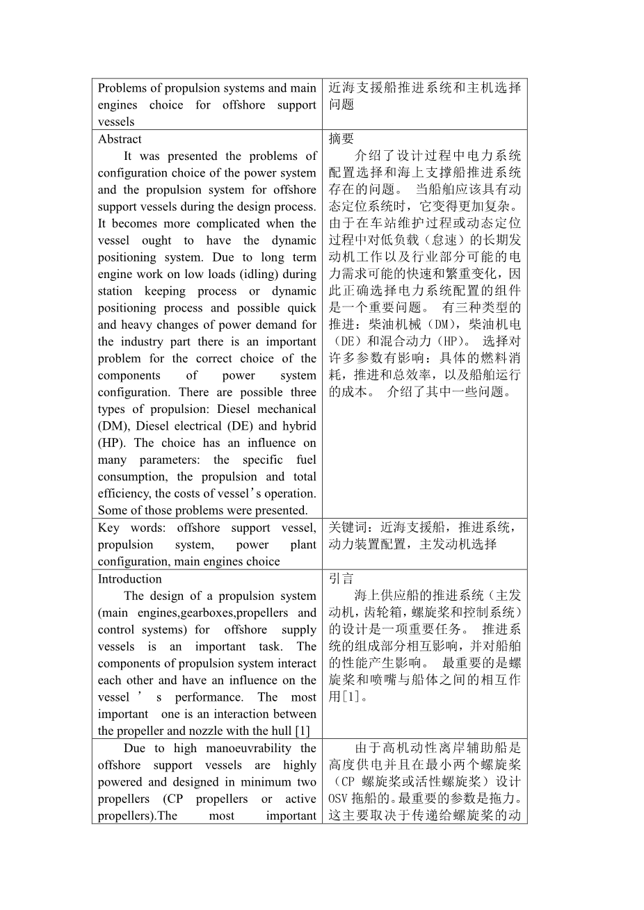 36000DWT化学品船机舱设备选型和布置设计外文翻译资料 2022-04-25 22:26:55 英语原文共 6 页,剩余内容已隐藏,支付完成后下载完整资料 英语原文共 13 页,剩余内容已隐藏,支付完成后下载完整资料资料编号:[13303],资料为PDF文档或Word文档,PDF文档可免费转换为Word 原文和译文剩余内容已隐藏,您需要先支付 30元 才能查看原文和译文全部内容!立即支付 发小红书推广免费获取该资料资格。点击链接进入获取推广文案即可: Ai一键组稿 | 降AI率 | 降重复率 | 论文一键排版 PREVIOUS NEXT 您可能感兴趣的文章 氢气站高多级减压阀流量和温度特性的数值分析外文翻译资料 在低温工况下缸套表面形貌对缸套-活塞环摩擦副摩擦磨损的影响外文翻译资料 稀释在评价可能影响大型游轮的废水排放中的意义外文翻译资料 第一章 雷达的简介和概要外文翻译资料 使用时频分析和小波技术的旋转机械振动分析外文翻译资料 船舶舵机PLC控制设计外文翻译资料 减少排放的海洋技术外文翻译资料 巴拿马型集装箱船和大型油轮的新经济性引擎外文翻译资料 基于均载的非对称高接触比直齿圆柱齿轮承载能力研究.外文翻译资料 水轮机组件中的空蚀和抗空蚀涂层的研究现状和发展需求外文翻译资料