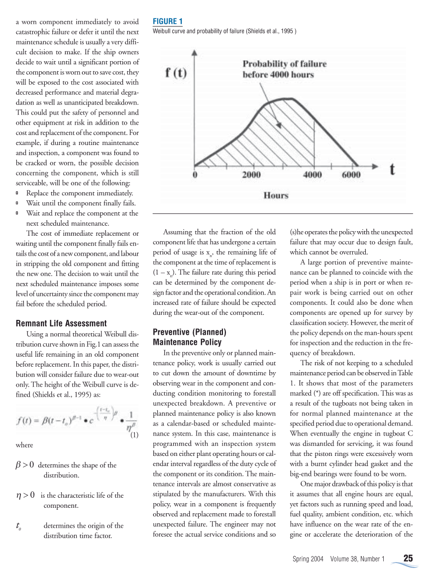 使用图1所示的正常理论威布尔分布曲线可以评估替换前旧组件的剩余使用寿命。 在本文中,分布仅考虑由于磨损而导致的故障。 威布尔曲线的高度定义为(Shields et al。,1995):