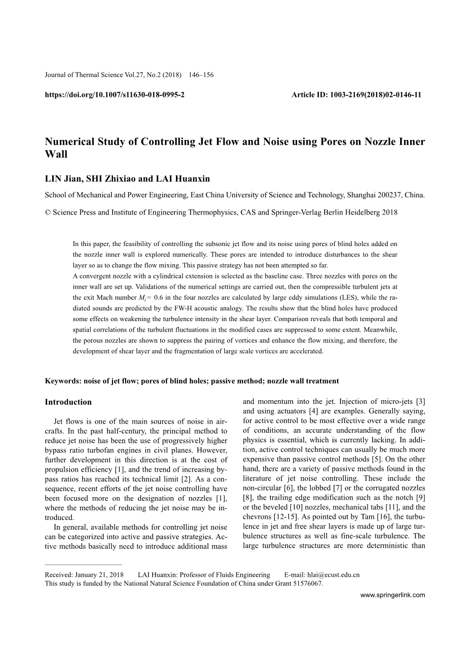 关键词:射流噪声; 盲孔的孔隙; 被动方法; 喷嘴壁处理
