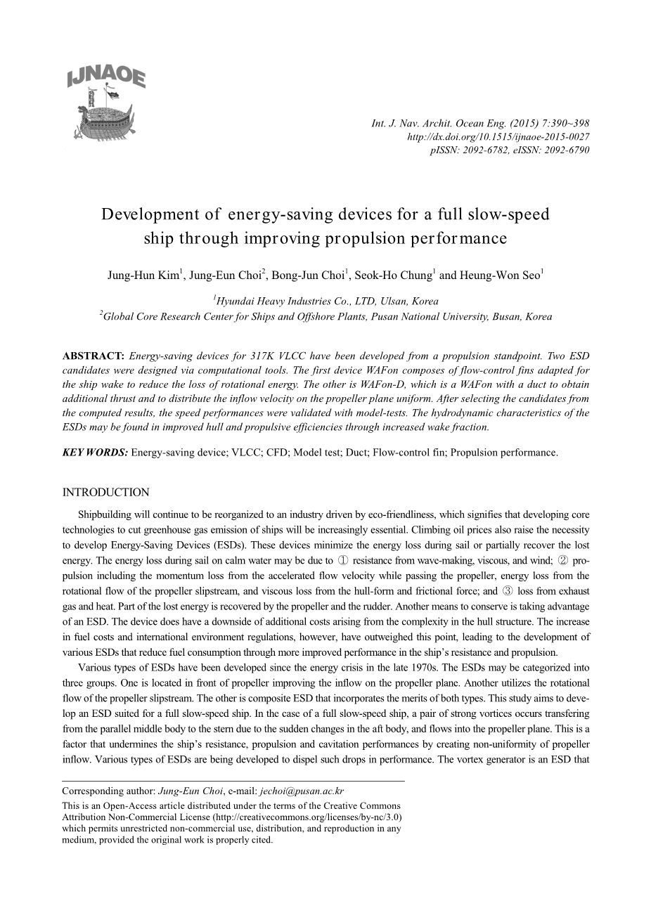 在这项研究中,改进全速船317k VLCC推进性能的静电消除器已经使用CFD进行设计并通过模型试验进行验证。 本文的第二章将研究客观的船舶和计算条件; 第三种有效的CFD技术来开发可持续发展教育; 第四个将处理设备的设计概念; 使用CFD开发ESD的第五项; 以及用拖曳水池实验的ESD模型船性能分析方法和评估的第六和第七。