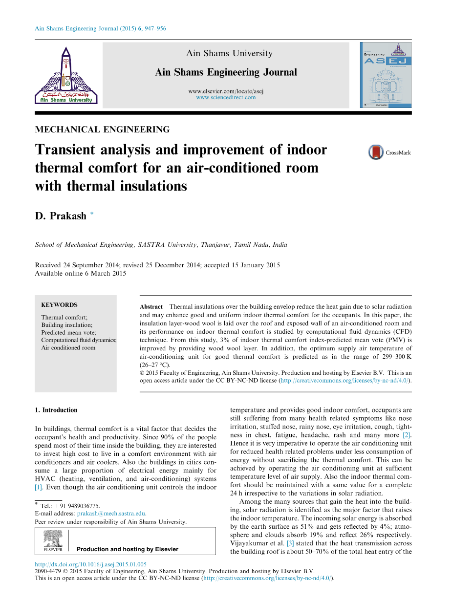 在建筑物中,热舒适是决定居住者健康和生产力的重要因素。由于90%的人把大部分时间花在大楼里,他们有兴趣在空调和空气冷却器中享受高成本的生活。此外,城市的建筑物主要在暖通空调(供暖、通风和空调)系统消耗了很大比例的电能。虽然空调单元控制了室内的温度并提供良好的室内舒适度,居住者仍受到许多健康相关的问题。比如鼻子过敏、症状鼻塞、鼻炎、眼睛发炎、咳嗽、胸闷胸痛、疲劳、头痛、皮疹等等。因此,在不牺牲热舒适性并不消耗能源的情况下,操作空调装置减少与健康有关的问题是非常有必要的。这可以通过在足够空气供应温度下操作空调机组来实现。此外,室内热舒适应在24小时内保持相同的值,无论太阳辐射的变化。