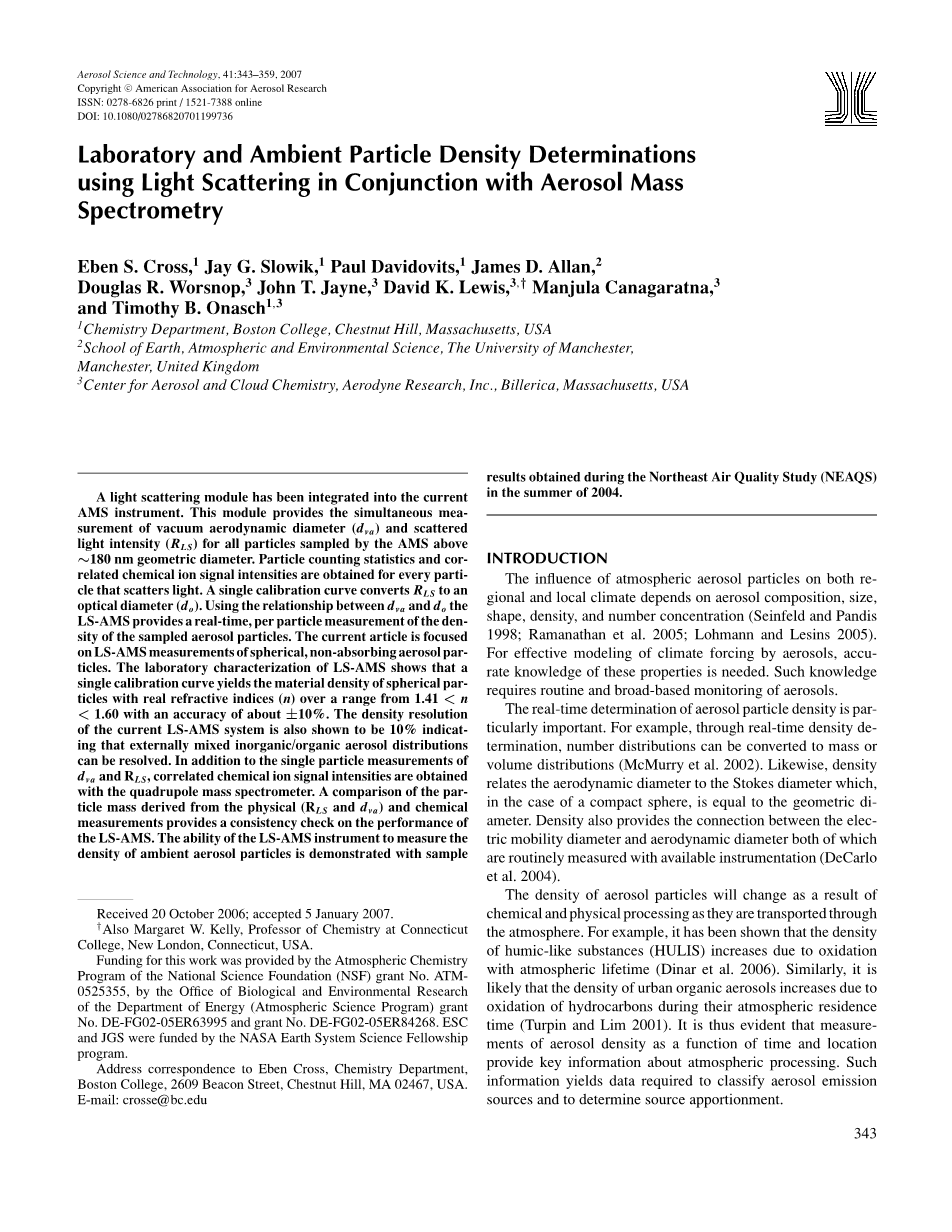 在这里,我们介绍一下LS-AMS系统在实验室和现场测量中的校准与操作。2004年夏季的东北空气质量研究(NEAQS)证明了LS-AMS系统测量环境中气溶胶密度的能力。