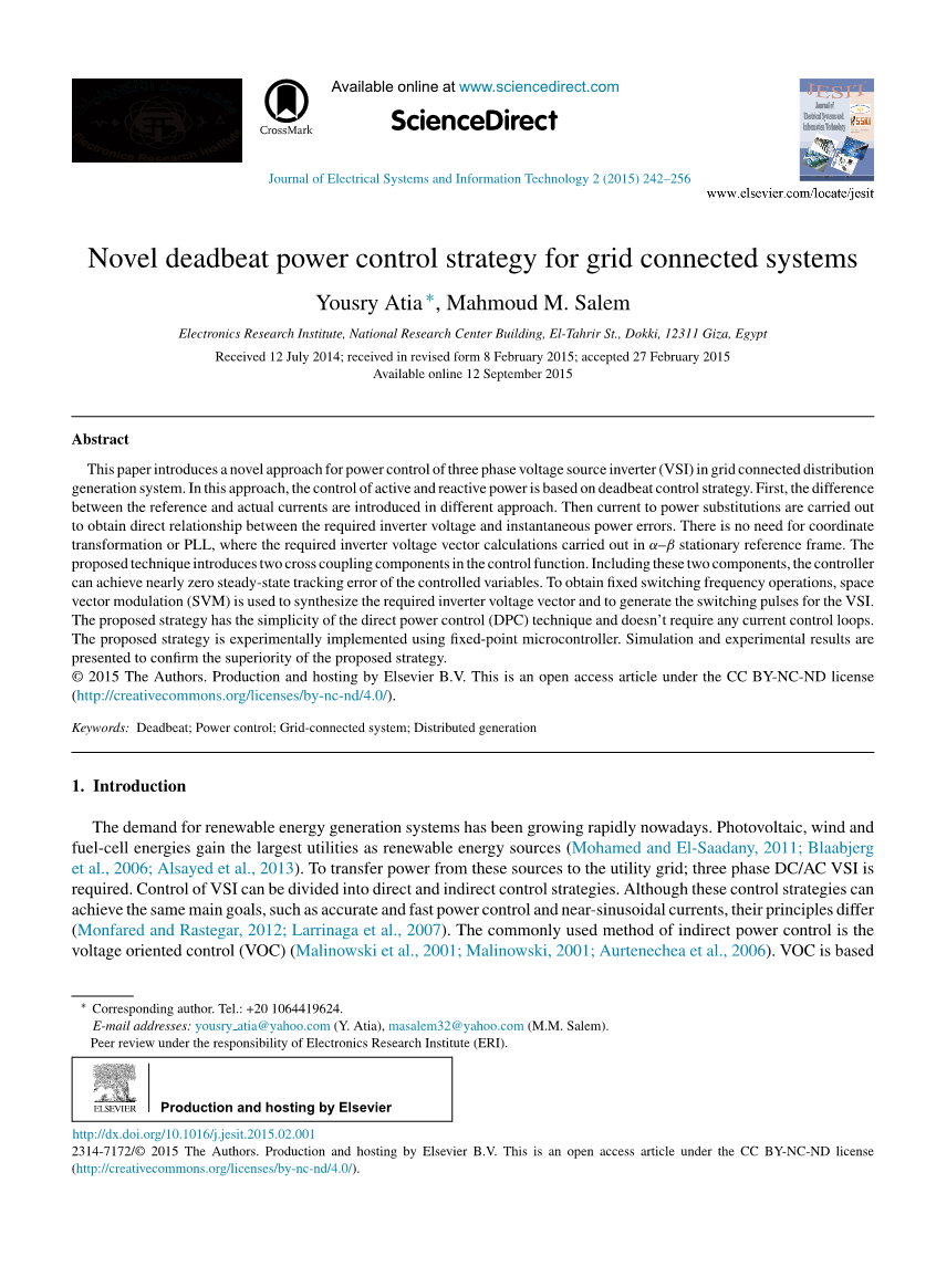 邮箱地址: yousry atia@yahoo.com (Y. Atia), masalem32@yahoo.com (M.M. Salem). Peer revi电子研究所负责审查(ERI).
