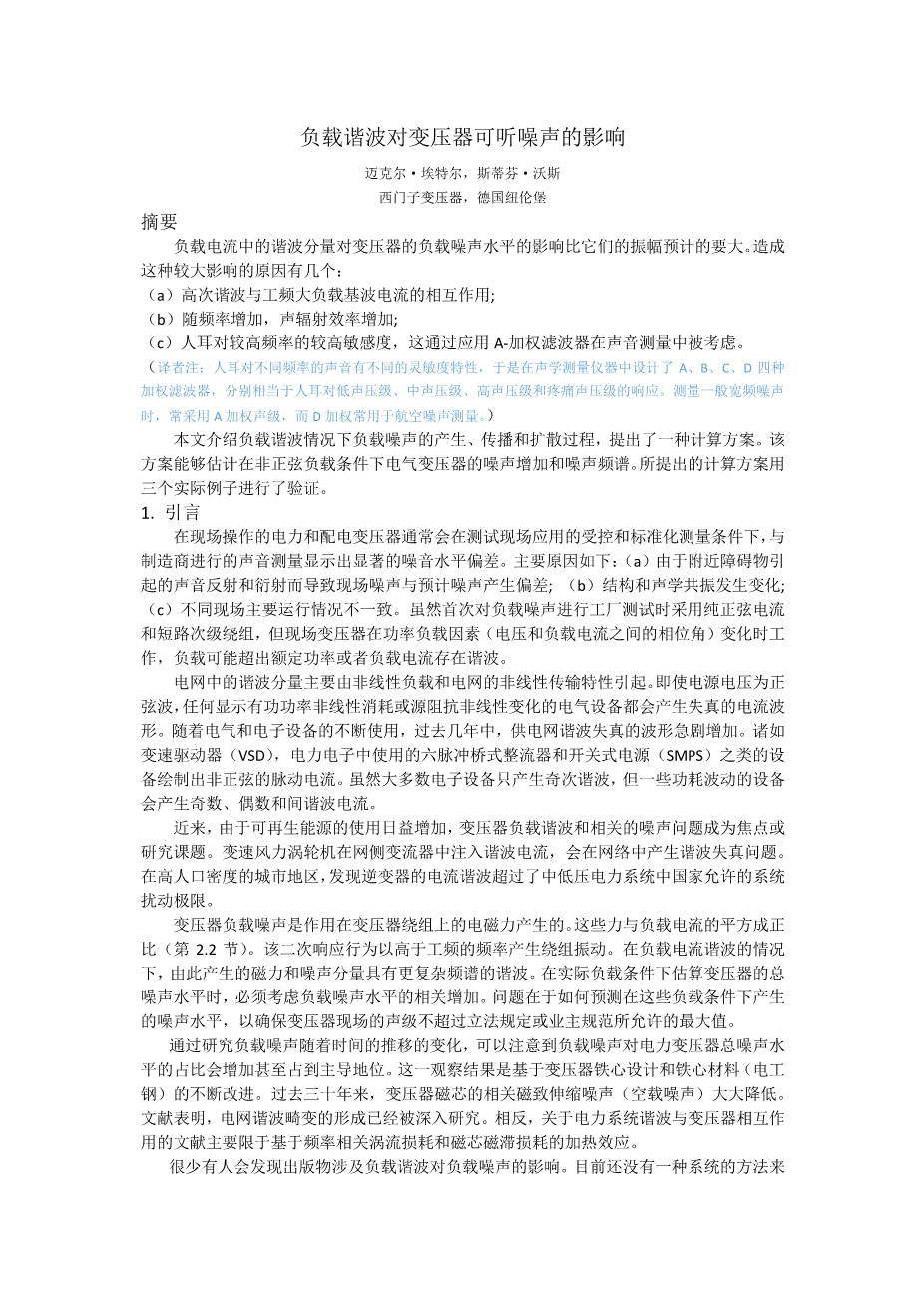 单相变压器电能质量与振动噪声相关性研究外文翻译资料
