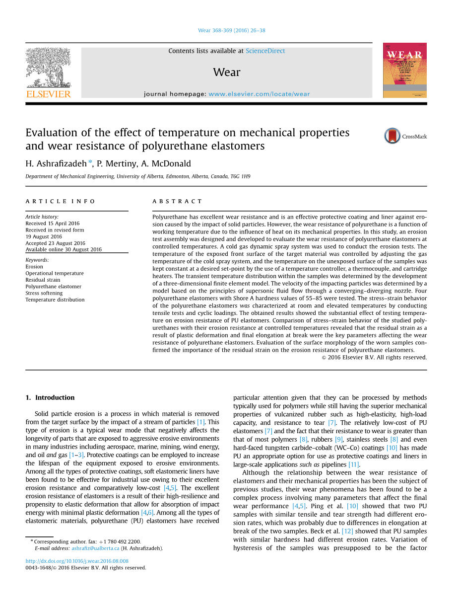 机械工程系,阿尔伯塔大学,埃德蒙顿,亚伯达,加拿大,T6G 1H9