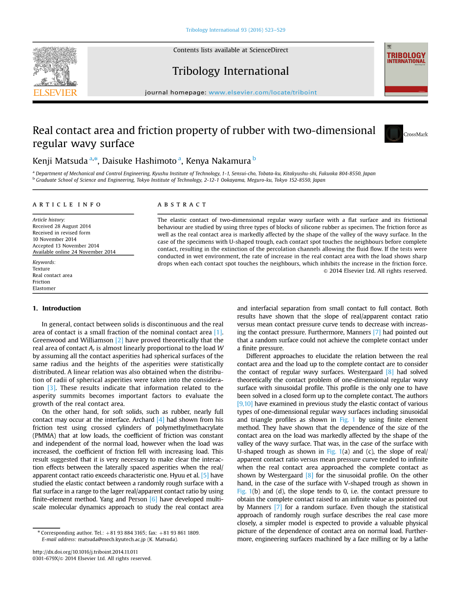 二维规则波状表面橡胶的真实接触面积及摩擦性能外文翻译资料