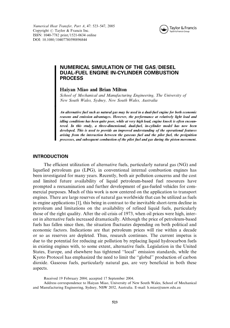 近年来,通过实验和数字方式进行的研究增进了人们对一种燃气发动机即双燃料(DF)发动机的了解。这适用于其运行过程和燃烧过程。上述大部分工作直接在改装后的柴油机上进行,而某些则是通过使用恒定体积燃烧弹的实验对基本燃烧建模。相对于常规燃料发动机,对双燃料发动机燃烧过程的理解仍然不充分,因为燃烧往往是柴油和火花点火发动机中燃烧的复杂组合,同时遇到了两者的问题。需要进一步的发展,以使压缩点火双燃料发动机能够在其全速=负载范围内以更高的替代燃料替代率更有效地运转。为此,对双燃料发动机缸内燃烧过程的更深入的基本了解是有益的。