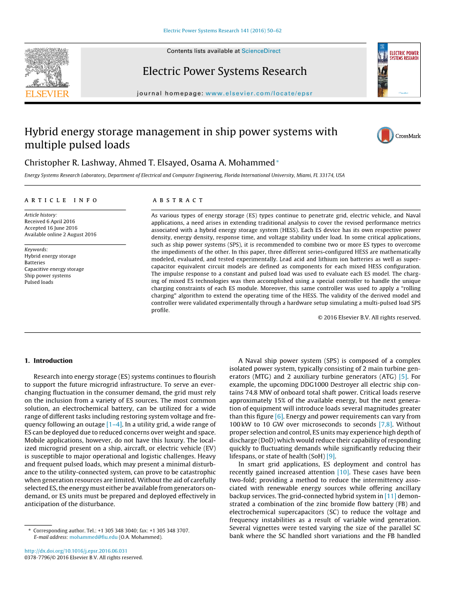 能源存储(ES)系统的研究继续蓬勃发展,以支持未来的微电网基础设施。为了满足消费者需求不断变化的波动,电网必须依赖于来自各种ES来源的信息。最常见的解决方案是电化学电池,它可以用于多种不同的任务,包括恢复系统电压和断电后的频率[1-4]。在公用事业网格中,由于减少了对重量和空间的关注,可以部署广泛的ES。然而,移动应用程序却没有这种奢侈。船舶、飞机或电动汽车(EV)上的局部化微电网容易受到主要的操作和后勤挑战。当发电资源有限时,频繁而沉重的脉冲负荷可能会对电力连接系统造成极小的干扰,从而造成灾难性的后果。在没有精心挑选的ES的帮助下,能量必须可从发电机按需提供,或者ES单元必须准备好并有效地部署以应对干扰。