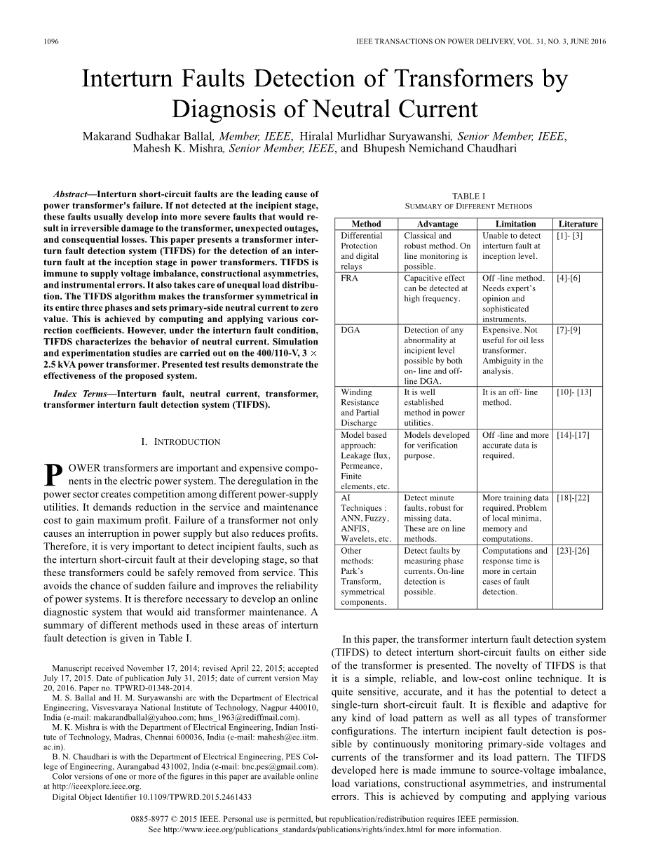 关键词:变压器匝间(TIFDS)故障检测;修正系数;匝间故障条件。
