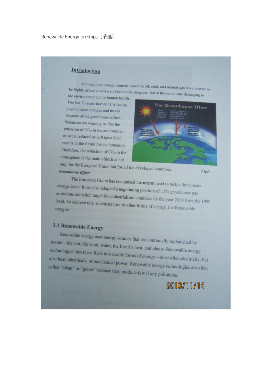 在这个项目里,作者将列出现在的船舶里潜在的可以进行可再生技术改革的地方。