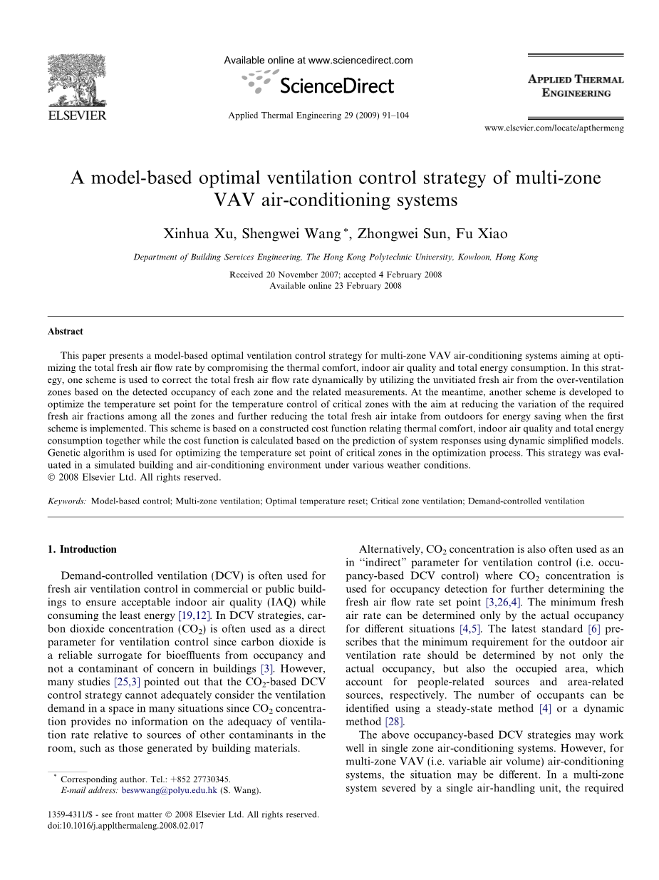 基于模型的多区域变风量空调系统最优通风控制策略研究