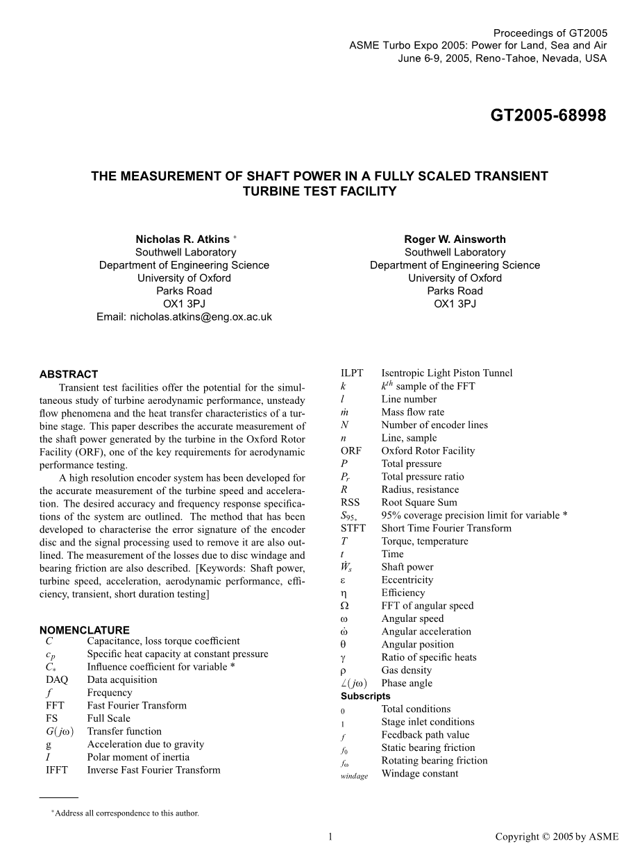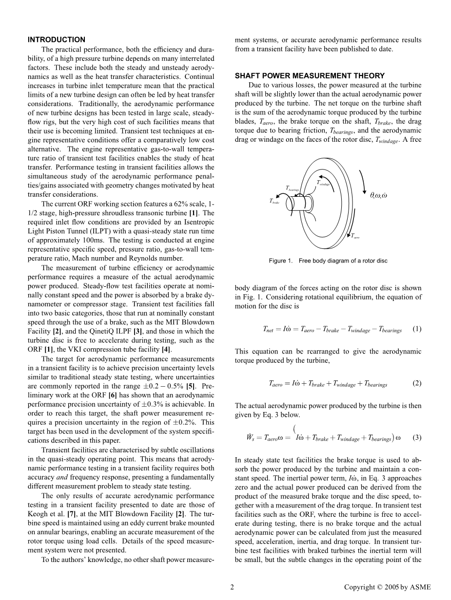 对作者所知,没有其他的轴功率测量系统或精确的气动性能结果从一个瞬变的设施已经发布到日期。