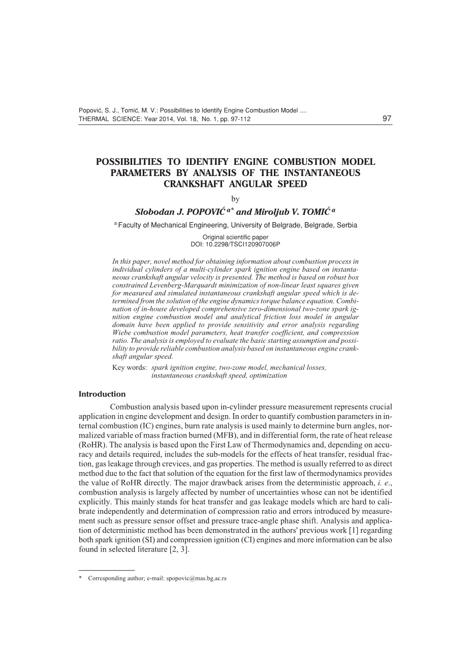 Slobodan J. POPOVI] a* and Miroljub V. TOMI] a