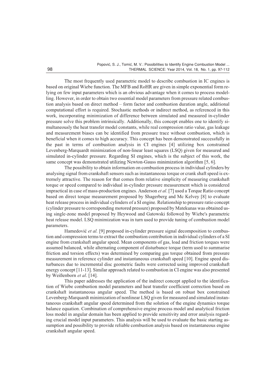 通过分析曲轴传感器信号如瞬时扭矩或曲柄轴的转速,来获得各气缸燃烧过程的信息的可能性是非常具有吸引力的。这样的原因是在大规模生产发动机的情况下,测量各缸曲轴转矩或速度比不切实际的考虑测量缸体内压力相对简单。Anderson等人引用了由Shagerberg 和 Mc Kelvey提出的基于直接转矩测量扭矩比的概念来评估一个火花式点火发动机的各气缸的热释放过程。 Heywood 和 Gatowski提出单区模型得到Matekunas 压力比(气缸压力比联动压力)的概念的关系,其次是韦伯的参数化的热释放模型。为了提供燃烧模型参数,最小二乘法的最小值被交替使用。