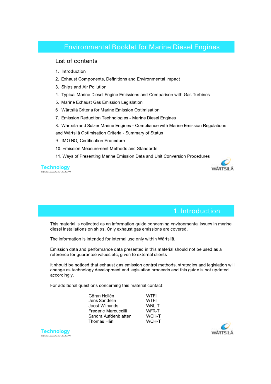 这种材料被收集作为船舶柴油机上的环境问题的信息指南。只涵盖了废气排放方面。