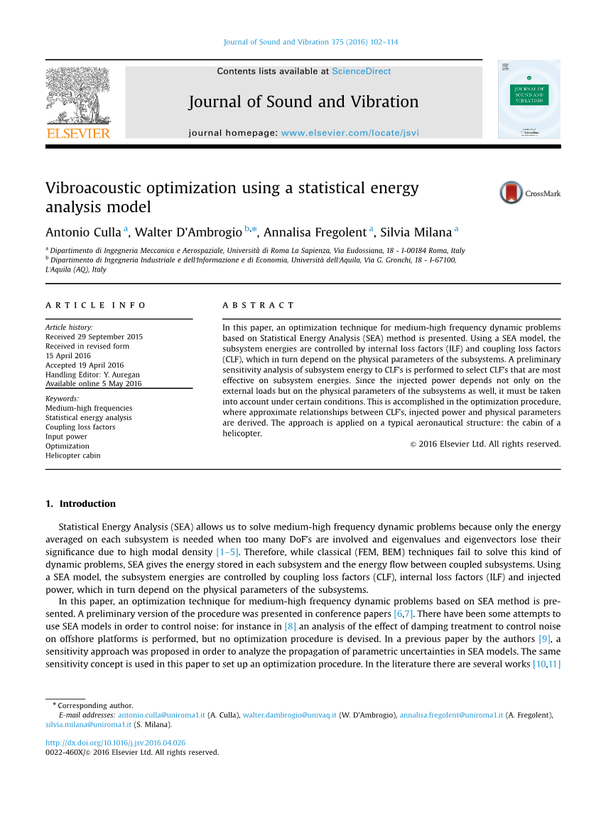 电子邮件地址:安东尼奥·卡尔拉·尤尼罗马1号( A·卡尔拉),沃尔特·达姆布罗吉奥·尤尼奥奇( W·D·安布罗吉奥),安娜莉萨弗雷戈伦·尤尼罗马1号( A·弗雷戈伦),西尔维亚·米拉纳·尤尼罗马1号( S·米拉纳)。卡尔拉等人。/ 声音与振动杂志375 ( 2016 ) 102114 103