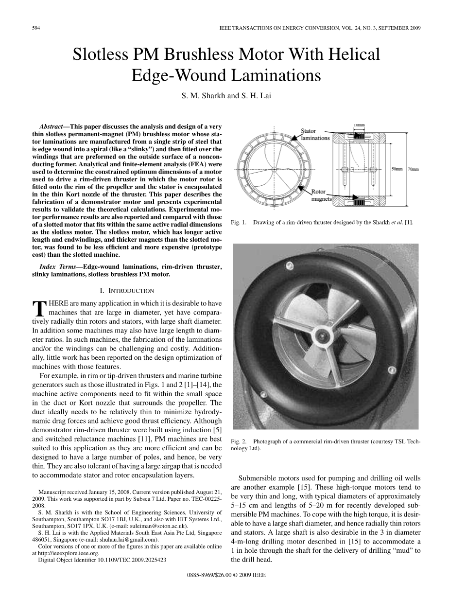关键词:无槽无刷永磁(PM)电动机,边绕式叠片,驱动推进器