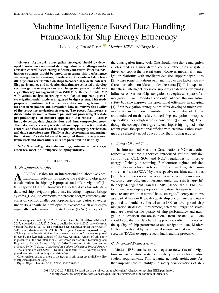 Lokukaluge Prasad Perera , Member, IEEE, and Brage Mo