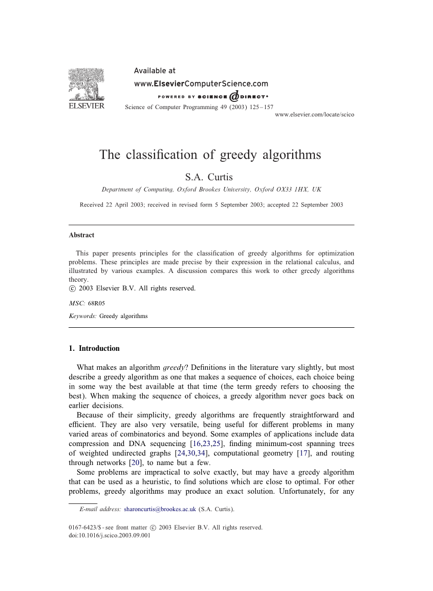 本文介绍了用于优化的贪婪算法的分类原则问题。这些原则通过它们在关系演算中的表达而变得精确,并且通过各种例子说明。 讨论将此工作与其他贪婪算法进行了比较。