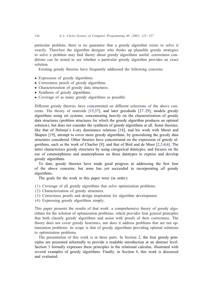 这项工作的介绍分为三个部分。 在第2节中,非正式地介绍了四种贪婪原则,以便在抽象层面上提供可读的介绍。第3节在关系演算中正式表达了这些原理,并用贪婪算法的几个例子进行了说明。 最后,在第4节中,讨论了这项工作并评估。
