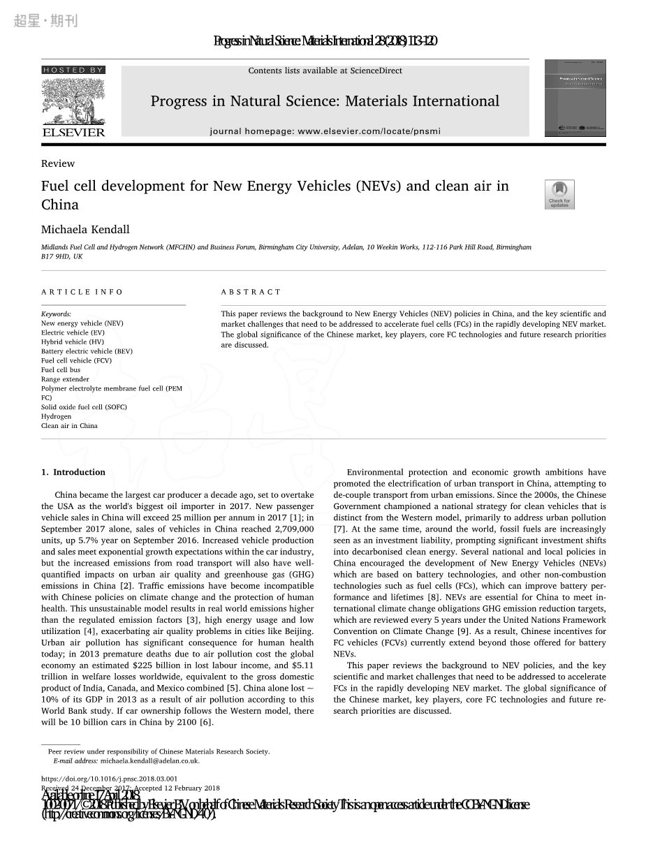 本文回顾了政策制定的背景,以及在快速发展的转型市场中加快解决关键科学和应对市场挑战。对全球产生重要影响的中国是关键的参与者,需要对处于核心技术的燃料电池技术进行探索.